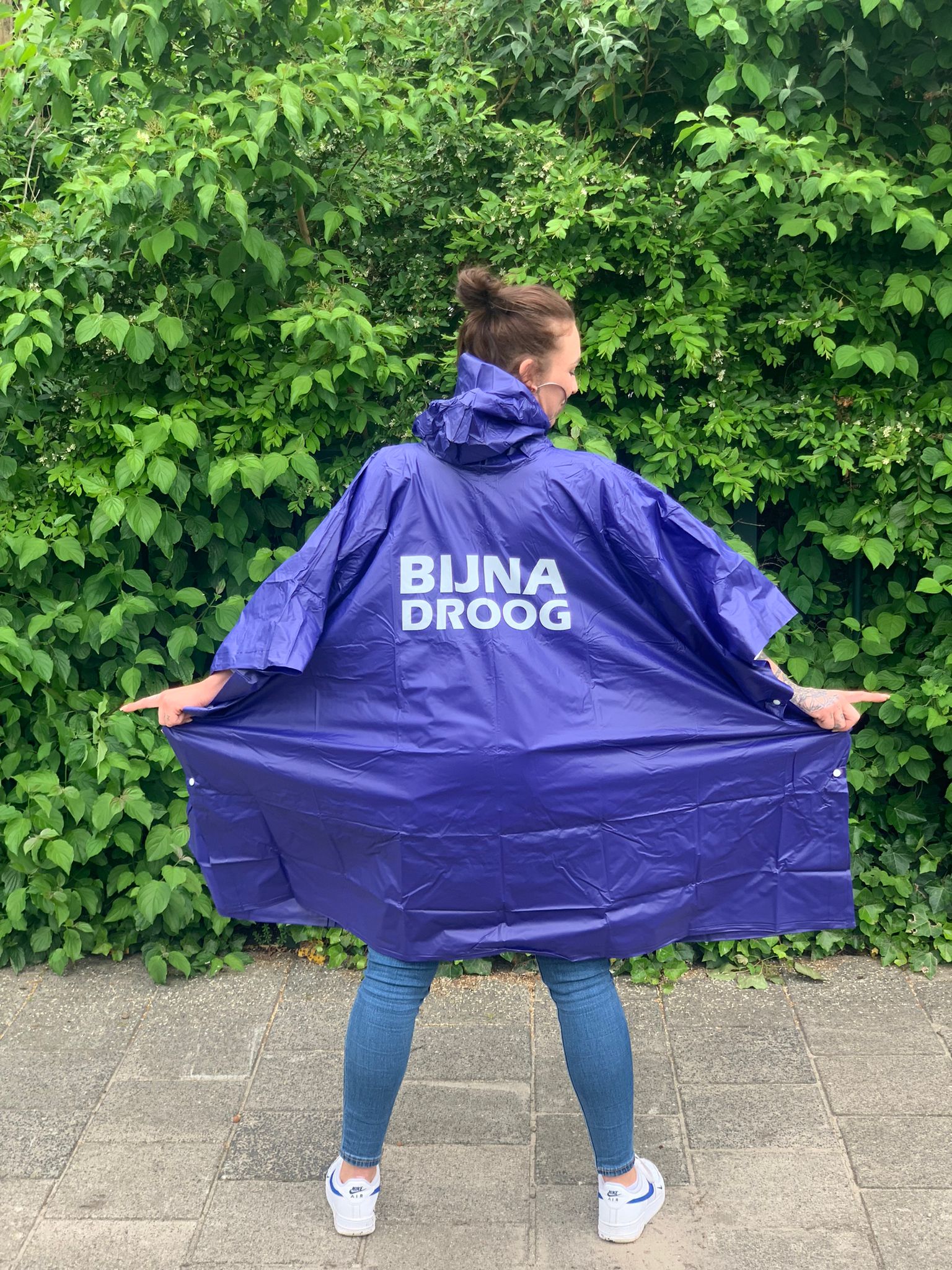 Blijf stijlvol droog met de oversized ‘Bijna Droog’ poncho. Perfect voor iedereen die zich door een regenbui niet laat tegenhouden. Comfortabel en praktisch voor jong en oud.